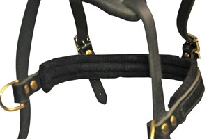 Like all D & T products the harness is guaranteed to be safe and comfortable for your dog. The chest strap is lined with black natural felt. The harness has two adjustable shoulder straps.
