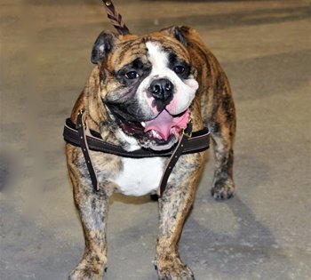 A studry, handmade, dog harness for larger dog breeds, which certainly stands out. The brass hardware is specially made in Switzerland and the leather comes from the best tanneries in the UK. Like all D & T products, the dog harness is guaranteed safe and comfortable for your dog. The harness has three D-rings for tracking and pulling.
