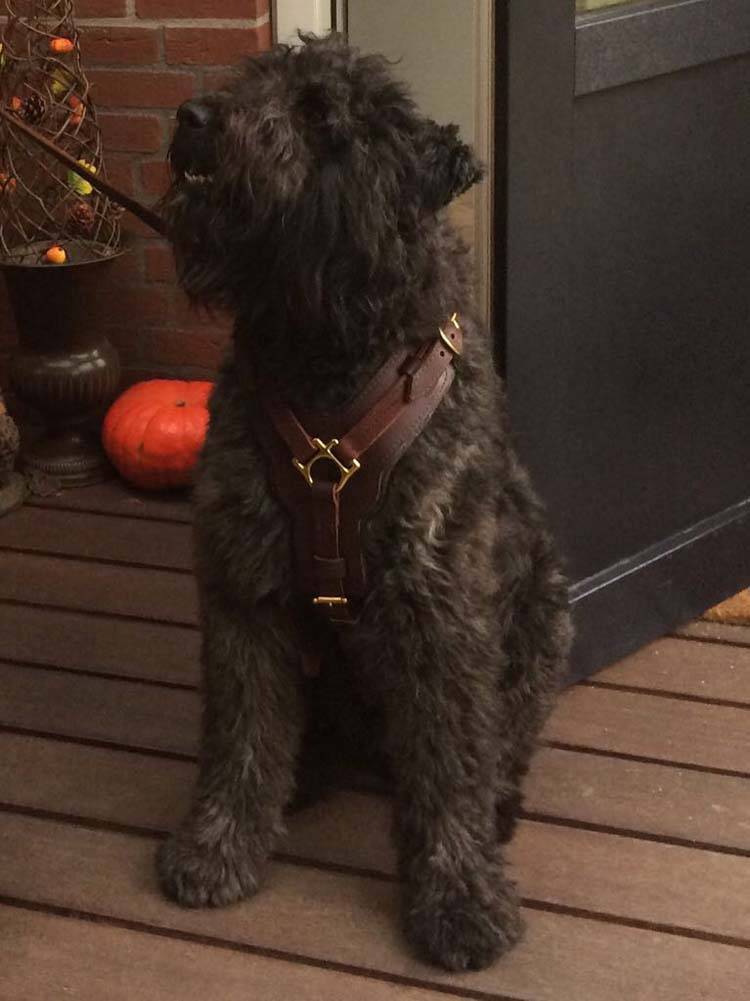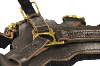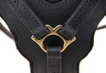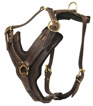 A sturdy dog harness of very high quality for the larger breeds. The breastplate is in the shape of a Y, so it diverts the pressure from the throat to the shoulders. The breastplate is made of thick leather that is suitable for heavy load and is lined with thick felt to absorb shocks. The straps are attached to the breast-plate with stitching, brass rivets and leather loops. The harness is designed to be heavily used, but also suitable for normal daily use. Like all D & T products, the harness is guaranteed safe and comfortable for your dog. The harness has four adjustable straps.