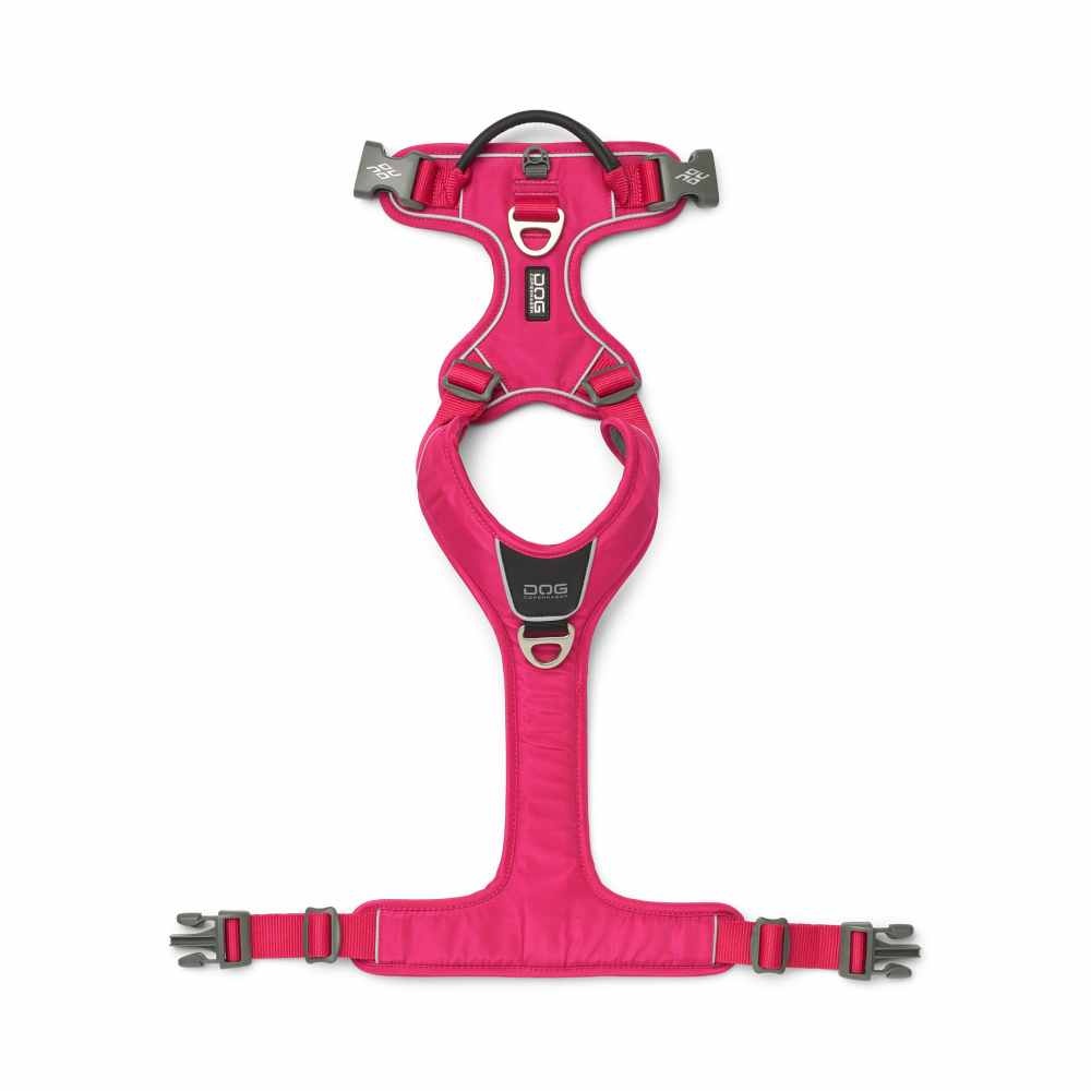 A comfortable and strong fuchsia dog harness, for the active dog, with a soft lining and an ergonomic design. Version 2024.