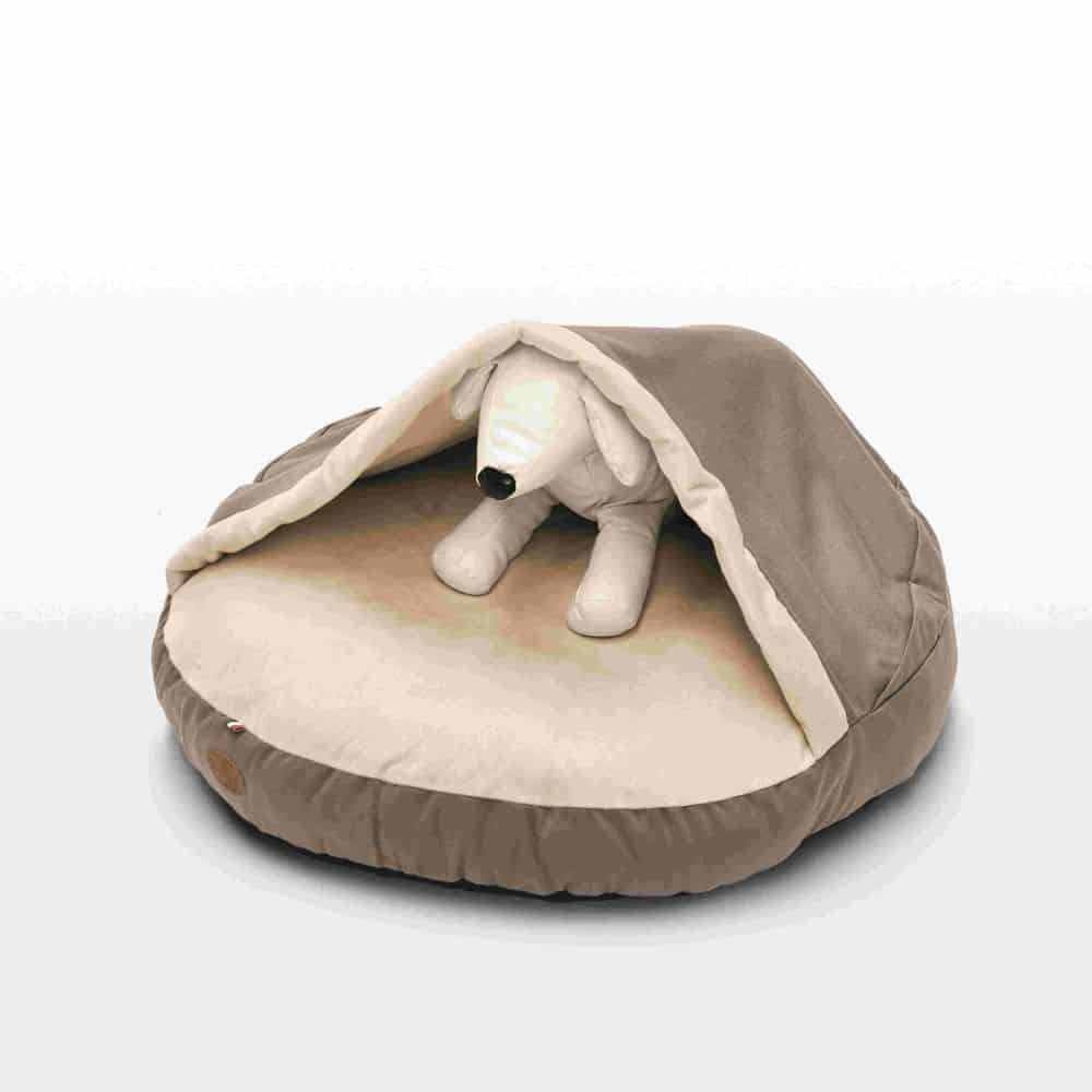 These dog beds, also called caves, are especially suitable for dogs without undercoat or with short hair, who are more sensitive to the cold. The soft lining ensures that they warm up quickly and keep the heat inside the house.