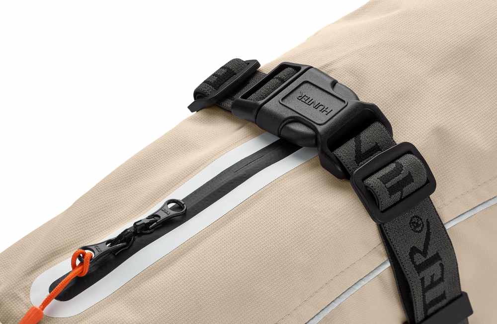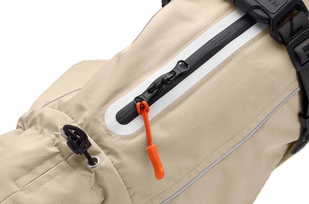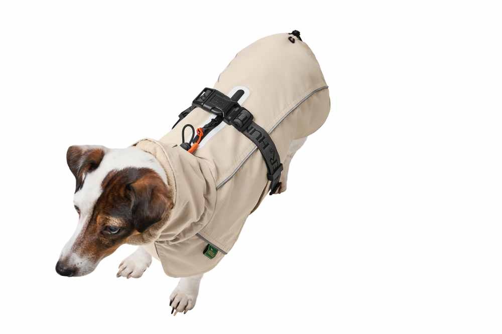 NORDBY is the ultimate all-weather dog coat. It combines functionality, comfort and style, keeping your four-legged friend warm and protected on every adventure. Designed to meet the needs of active dogs, the NORDBY coat includes a variety of features that make it an essential accessory. Whether it's raining, snowing or muddy, NORDBY keeps your pet's torso dry while remaining lightweight and comfortable. With a warm fleece lining, this sporty dog coat provides an extra layer of softness and warmth to keep your furry friend extra comfortable on cold days. A high neck and closed belly protect against moisture and draughts, and the individually adjustable, elastic belly strap ensures a custom fit and unrestricted freedom of movement. Thanks to a waterproof two-way closure, the coat can also be easily worn over a harness and the leash can be individually attached. Reflective piping also ensures maximum visibility in difficult light conditions and offers additional safety in traffic. The NORDBY coat is machine washable at 30 °C, making it easy to clean and maintain. NORDBY is simply the ideal choice for all dog owners who value functionality, comfort and safety.