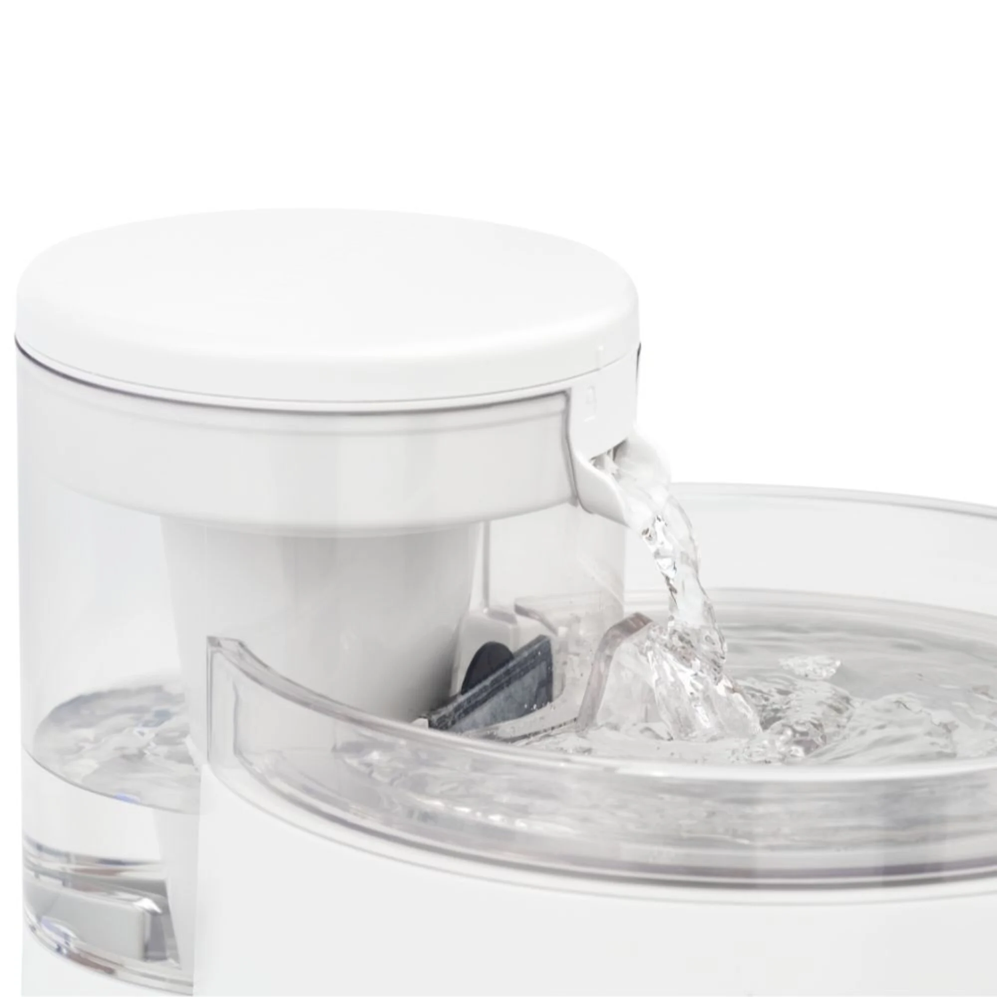 The PetSafe Outlast™ 1.7 L Pumpless Pet Fountain uses a unique gravity-fed system to pump water through a filter and into your pet's water bowl, providing a constant flow of fresh water.