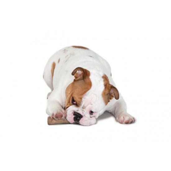 This is a synthetic chew bone for the dog, which contains natural antler. However, the bone is indestructible because it can not split nor splinter. The dog will love it because the bone has its original, natural scent. This dog toy has multiple textures that helps cleaning the dog's teeth during chewing.