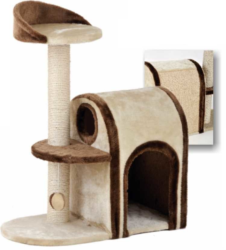 Your cat will not be bored with this varied beige scratching post. Cats love to climb and to view the area. This cat tree has a post with sisal rope. The scratching post offers on two platforms at different heights. Very nice for the cat is the covered rest area with two entrances on different levels. The cat toy will challenge your cat! The moorings and play tunnel are lined with soft beige and brown plush.