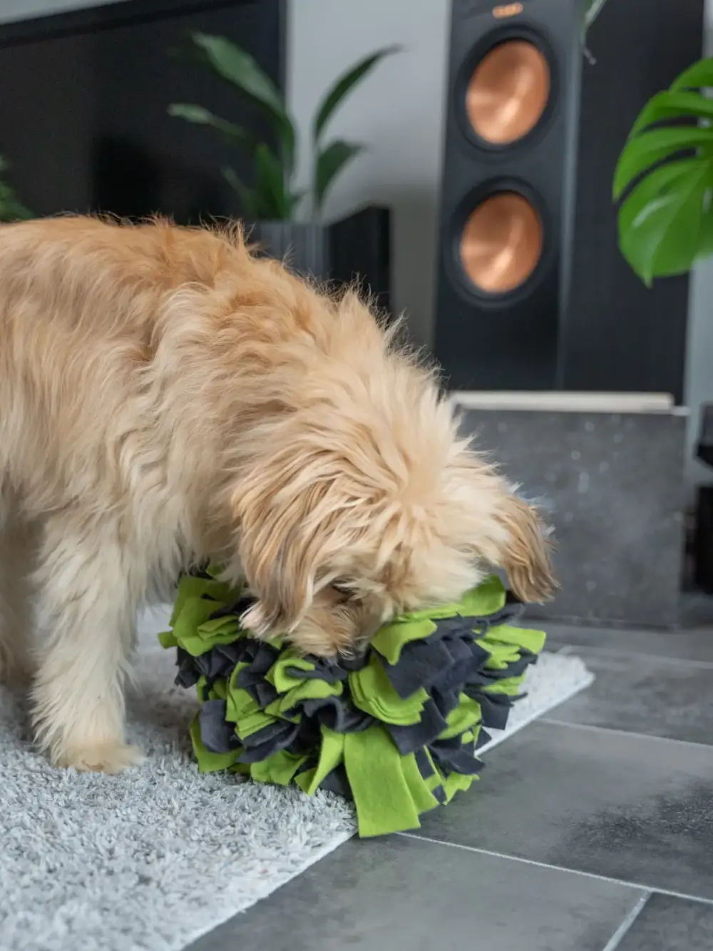 Mental Challenge : This toy challenges your dog's mind. You put some tasty snacks for the dog between the felt. Your dog will have to do his best to find the treats, which provides a mental challenge.