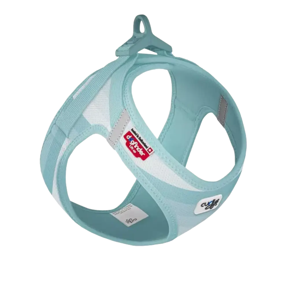 De curli Clasp Vest Harness Aqua SE22: 20% lichter, eenhandige sluiting en verkoelend Air-Mesh. Ontdek dit exclusieve aquablauwe hondentuig met DogFinder