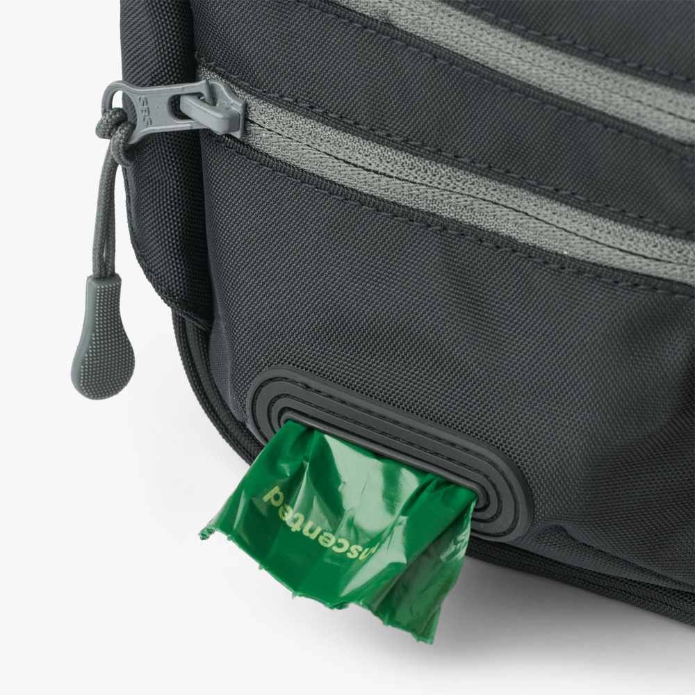 - Met een geïntegreerde poepzakdispenser heb je altijd poepzakjes bij de hand.
