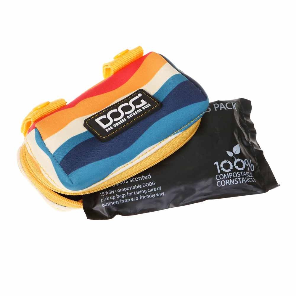 Voor de baasjes die niet graag een tas of riem dragen tijdens het uitlaten van de hond is de nieuwe DOOG Walkie Pouch het antwoord. Dit handige, lichtgewicht etui wordt geleverd met 15 poepzakjes die als tissues uit een kleine opening aan de voorkant worden getrokken.