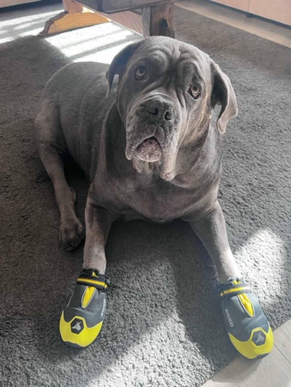 Deze hondenschoenen worden in een set van twee geleverd, let erop dat de voor- en achterpoten vaak verschillen in maat.