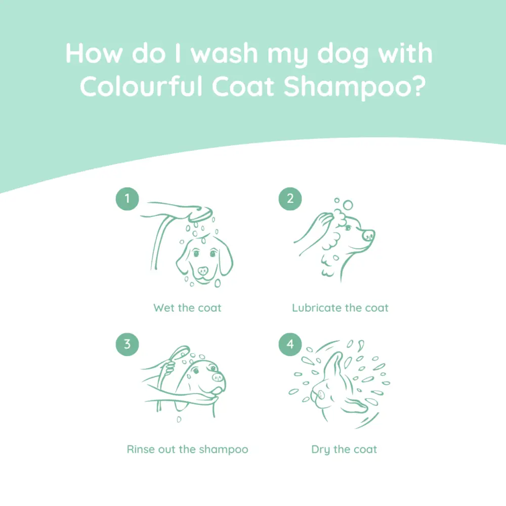 Een verzorgende hondenshampoo die speciaal is ontwikkeld voor honden met een gekleurde vacht. De natuurlijke kleurpigmenten hechten zich aan de vacht van de hond. Hierdoor wordt de kleur van de vacht versterkt en blijft de vacht langer mooi. De shampoo zorgt voor een gezonde en stralende uitstraling.