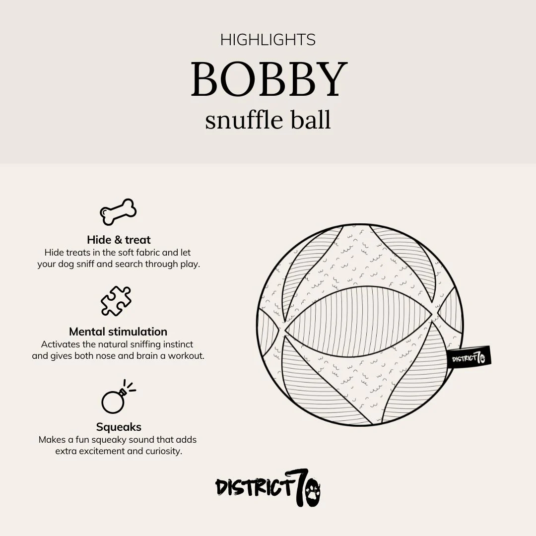 District 70 bewijst dat hondenspeelgoed ook mooi kan zijn. De BOBBY snuffelbal is uitgevoerd in luxe materialen en trendy kleuren die naadloos aansluiten bij een modern interieur. Verkrijgbaar in Taupe, Merengue en Pink.
