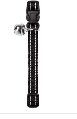 Dit is een zwarte kattenhalsband die is gemaakt van elastisch nylon. De halsband heeft reflecterende strepen. De halsband is voorzien van een klassieke kliksluiting. Verder is de halsband is traploos verstelbaar en heeft een belletje.