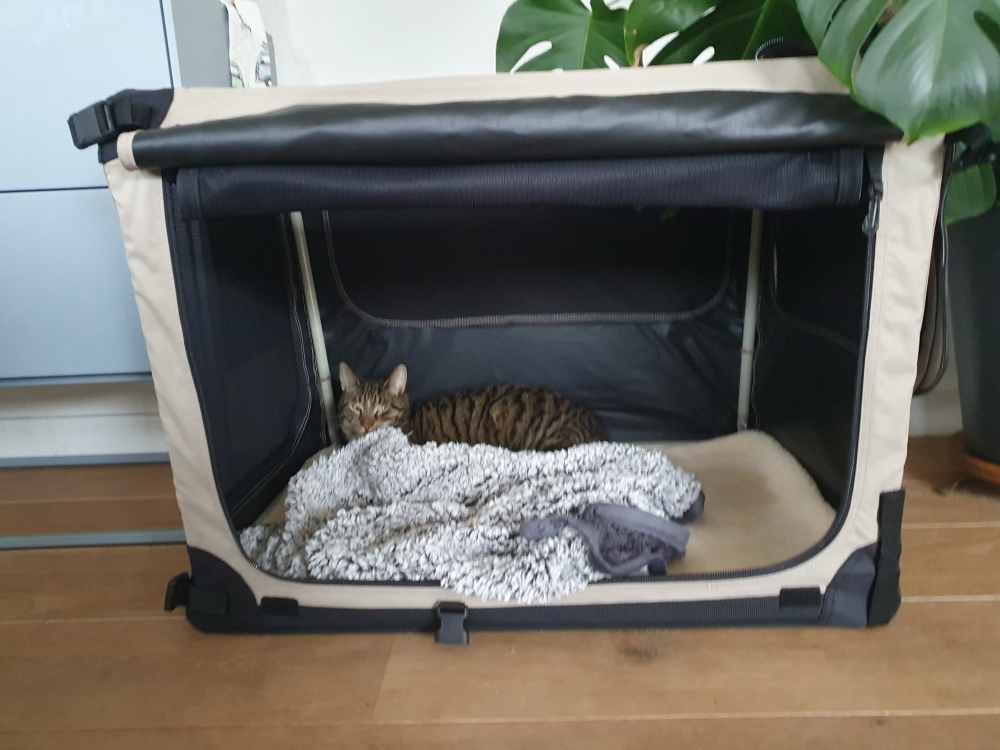 De kennel kan ook worden geplaatst in de kofferbak en worden vastgezet met de bungeekoorden.Er zijn rolgordijnen die zorgen voor intimiteit voor uw hond als het rust verlangt. Als u de bench in de auto plaatst op de achterbank, kunt u de bench vastzetten door middel van de autogordels. De zware ritsen garanderen gebruiksgemak, gecombineerd met een lange levensduur. De sluitingen zorgen ervoor dat uw hond de ritsen van binnenuit niet kan openen. Het wasbare binnenkussen is uitneembaar.