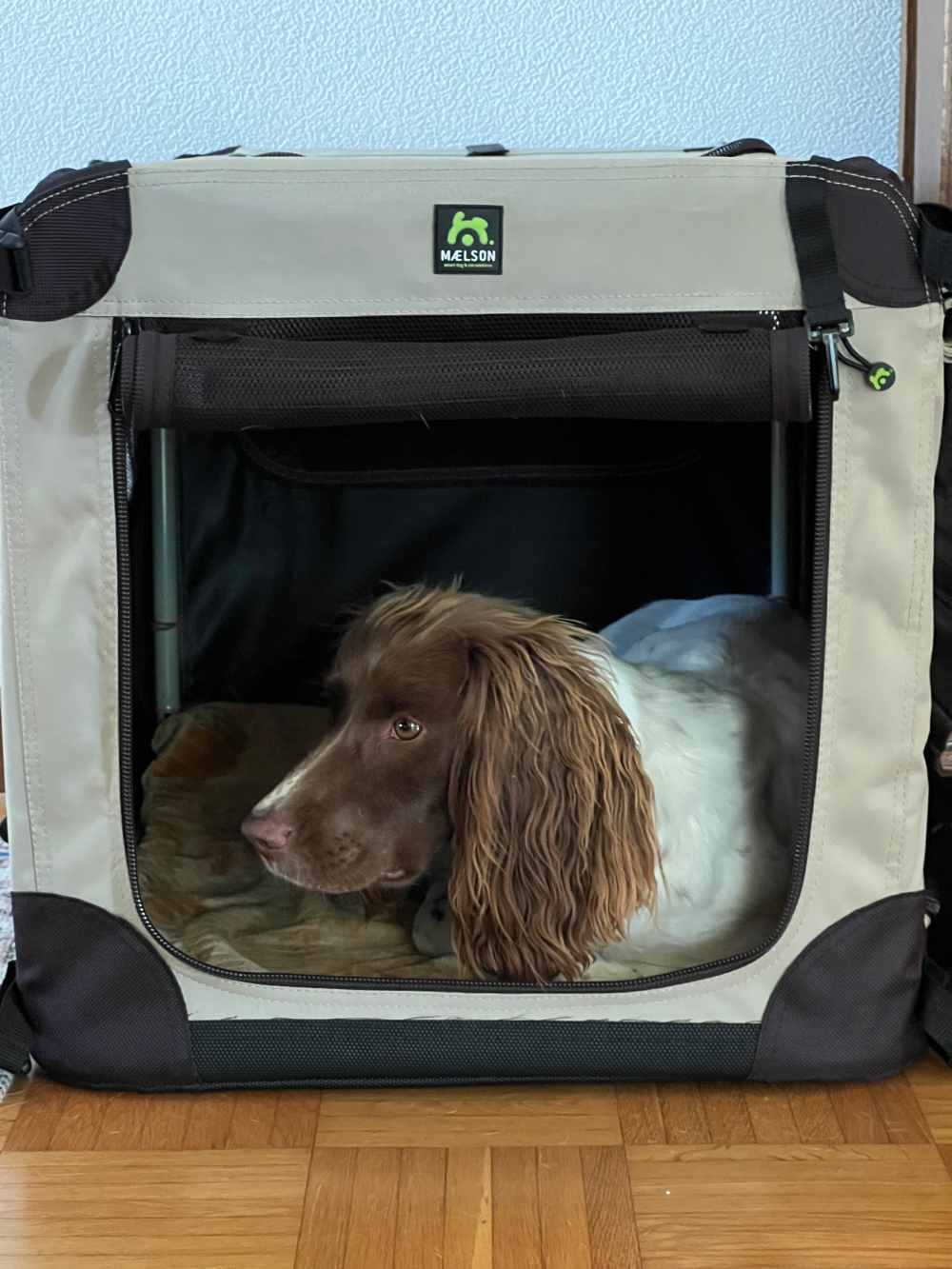 Deze beige hondenbench is extreem licht om te dragen en makkelijk op te zetten en in te klappen.Het binnenste stalen frame is inklapbaar en biedt een goede bescherming voor uw hond.