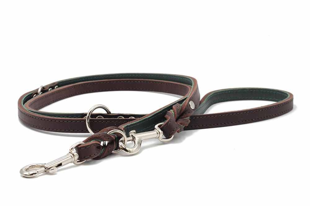 Hondenriem Klassiek Premium Bruin Groen Zilver