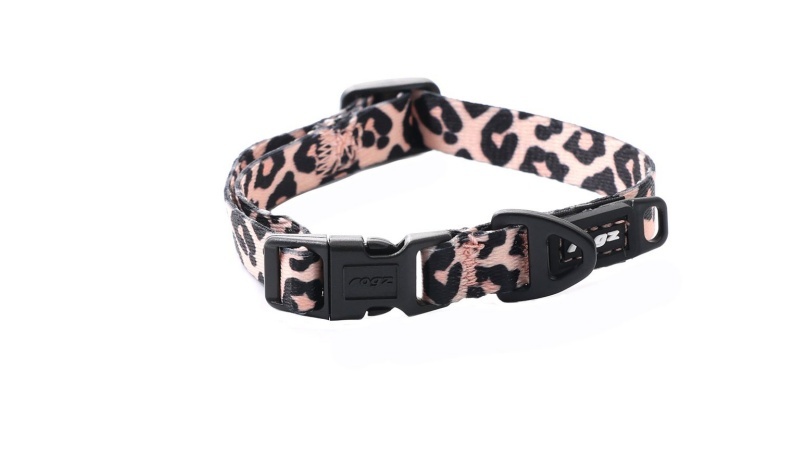 Een soft webbing nylon hondenhalsband, met een sterke kliksluiting en een uitstekende pasvorm, ontwikkeld voor de actieve hond. De halsband heeft een hippe roze luipaard print.