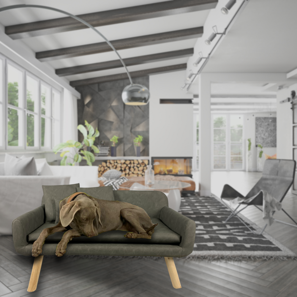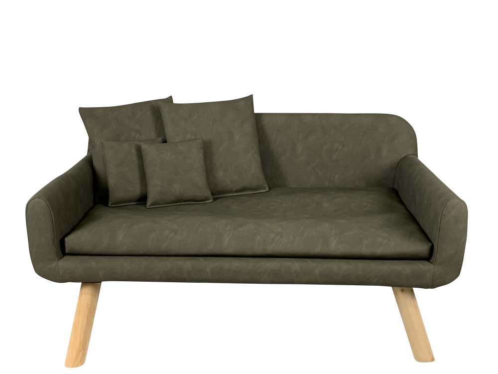De uitstraling van deze hondenbank doet denken aan een klassieke Engelse leren bank in een mannenkamer. Uw trouwe viervoeter zal zich heerlijk voelen op deze uiterst gezellige dierensofa. De hoes van de hondenbank ziet eruit als echt oud leer maar is eigenlijk gemaakt van onderhoudsvriendelijke stof met een vintage look. Vuil kan meestal gemakkelijk worden weggeveegd. De stevige houten poten bieden voldoende bodemvrijheid en beschermen zo tegen de kou. Het liggedeelte wordt aangevuld met vier sierkussens. Dit product wordt volledig in Duitsland geproduceerd.