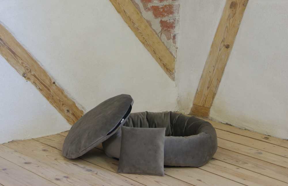 Een heerlijke zachte ronde hondenmand die is gemaakt van trendy taupe fluweel. De mand heeft een los binnenkussen en de hoes is afneembaar. In diverse maten leverbaar. De mand heeft nog een sierkussentje. Dit product is volledig in Duitsland gemaakt.
