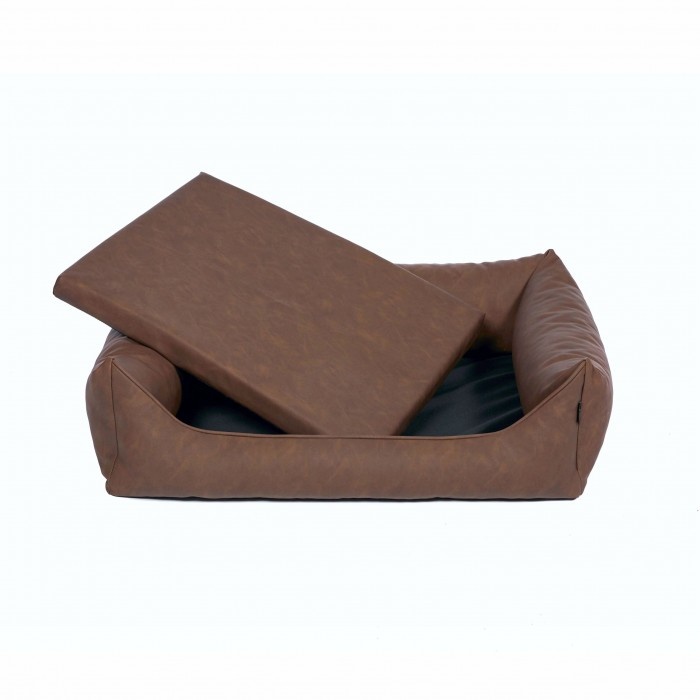 Dit is een moderne en trendy hondenmand die fraai is uitgevoerd met een uitneembaar los kussen. Het geheel is uitgevoerd in een hoge kwaliteit kunstleer. De randen zijn stevig gevuld en deze zijn zeer comfortabel voor de hond. Zij geven de juiste ondersteuning aan uw hond voor de rug en de kop. De hoes is wel afritsbaar, maar niet wasbaar.