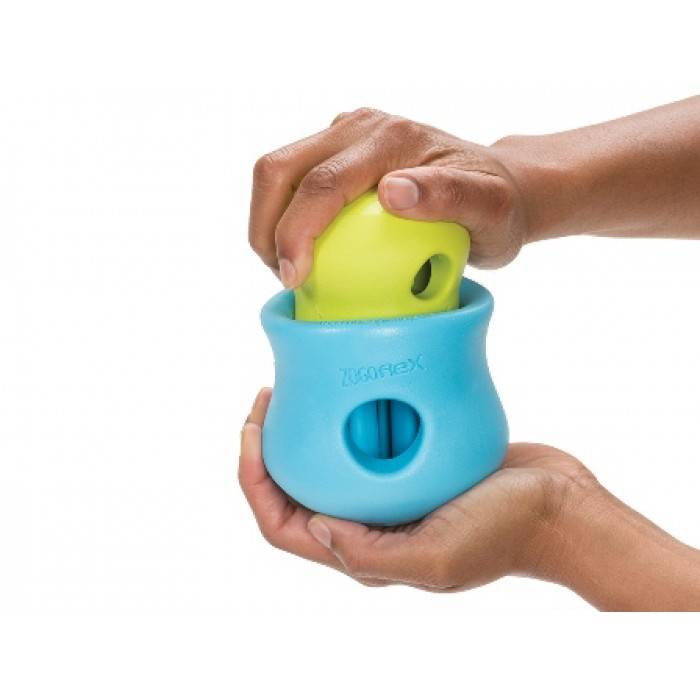 De Toppl is meer dan zomaar een speeltje. Het is een slimme voerdispenser die van de maaltijd of snacktijd een leuke uitdaging maakt. Door de onregelmatige vorm en de ruime opening kunt u de Toppl vullen met een breed scala aan lekkernijen: van droge brokjes en snacks tot zachte voedingsmiddelen zoals geprakte banaan, yoghurt of notenpasta.